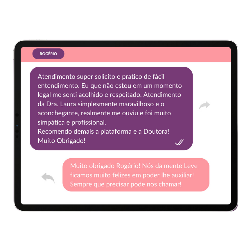 O Mente Leve é um serviço de saúde mental 100% online, que oferece um valor acessível para consultas psiquiátricas.