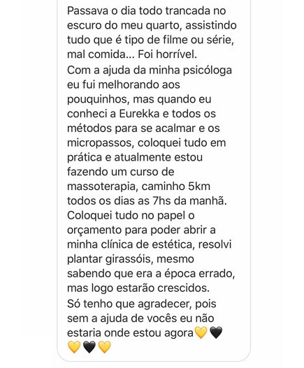 Assim, como um grande edifício construído com pecinhas de Lego, a Eurekka viu essas pessoas reconstruírem suas vidas. E ainda hoje, todas as semanas, a gente recebe depoimentos como esses: